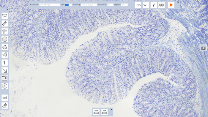 13/04/2026: Die neue Version von MikroLive verfügt über einen deutlich erweiterten Vollbildmodus, der sich komplett per Maus bedienen lässt. Hierdurch kann nach erfolgter Konfiguration der Software (z.B. Kalibrierung der Software) auf eine Tastatur verzichtet werden. Gleichzeitig wird im Vollbildmodus die Bildschirmfläche optimal für die Darstellung des mikroskopischen Bildes genutzt. Eine Beschreibung des Vollbildmodus finden Sie hier. Installationshinweise für die neue Software befinden sich hier.